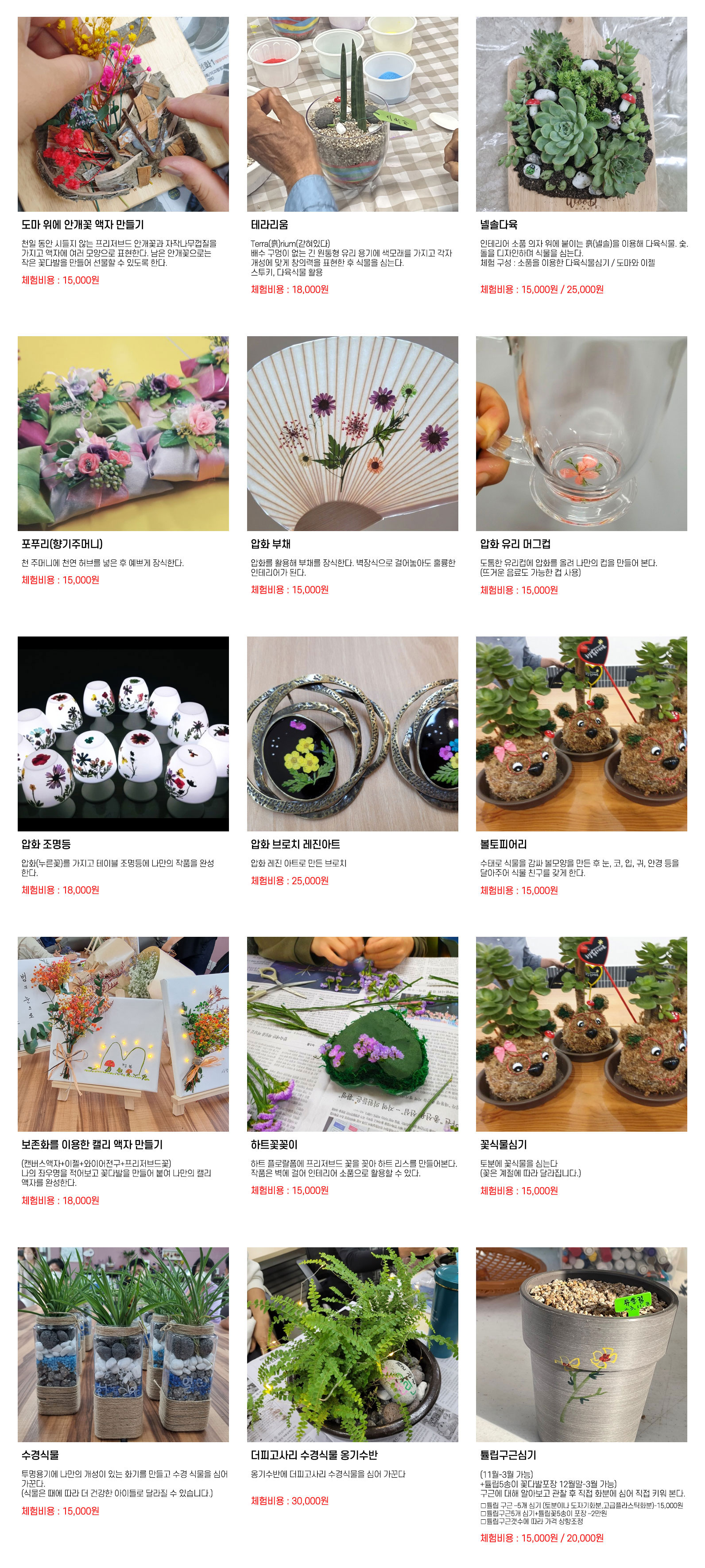 15명이하의 체험은 체험비가 올라갑니다. 모든 체험비는 조율 가능합니다.